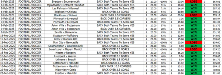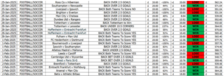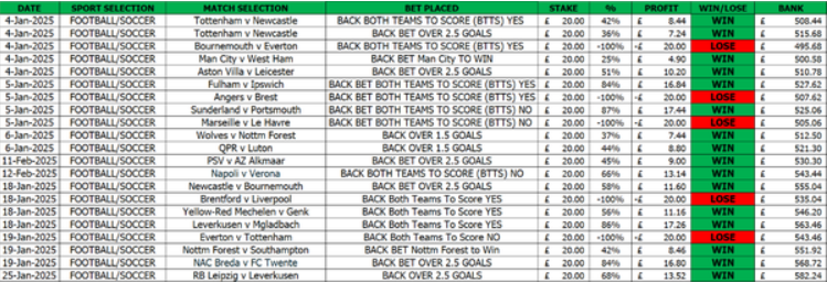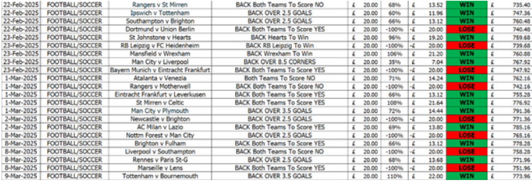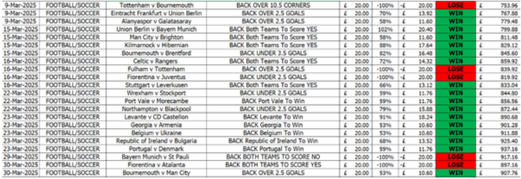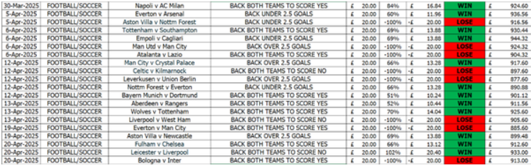 These are the latest results from January to April 2025, right up to this last weekend....This nearly doubled the bank during this period as shown in the video above plus the results below.